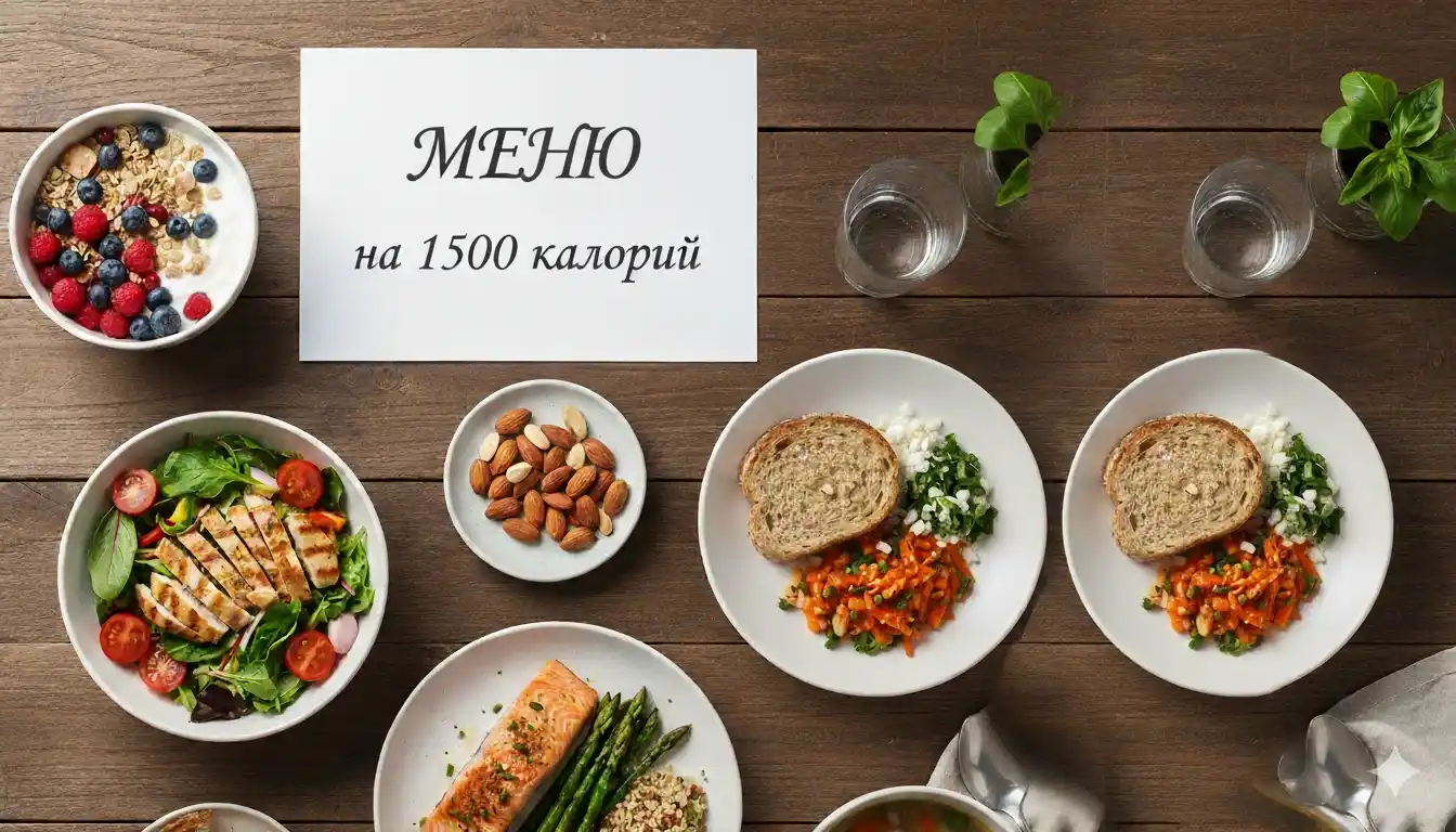 Рацион на 1500 ккал обычно включает 3 основных приёма пищи и 2 перекуса. Примерное распределение: